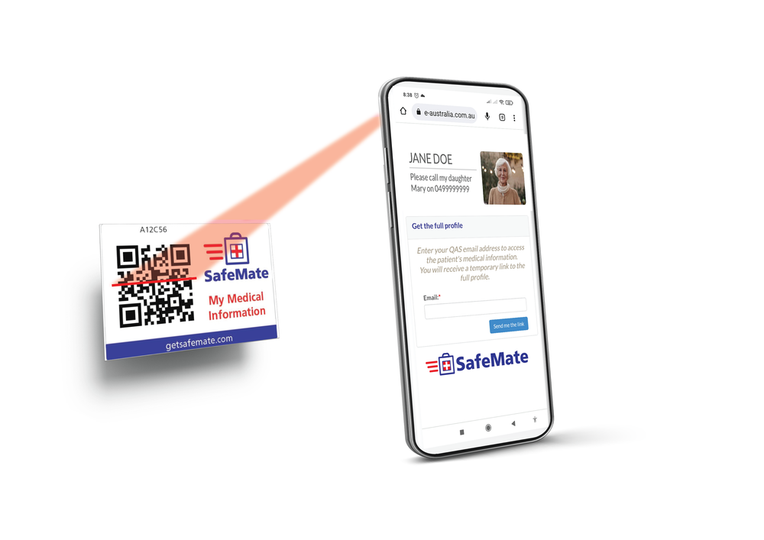 First responders (QLD paramedics only can access to SafeMate PLUS) and the general public (SafeMate PUBLIC) will be able to scan your SafeMate QR code, they retrieve this information off a safely encrypted profile that provides quick access to information, improving treatment time and reducing the risk of hospitalisation